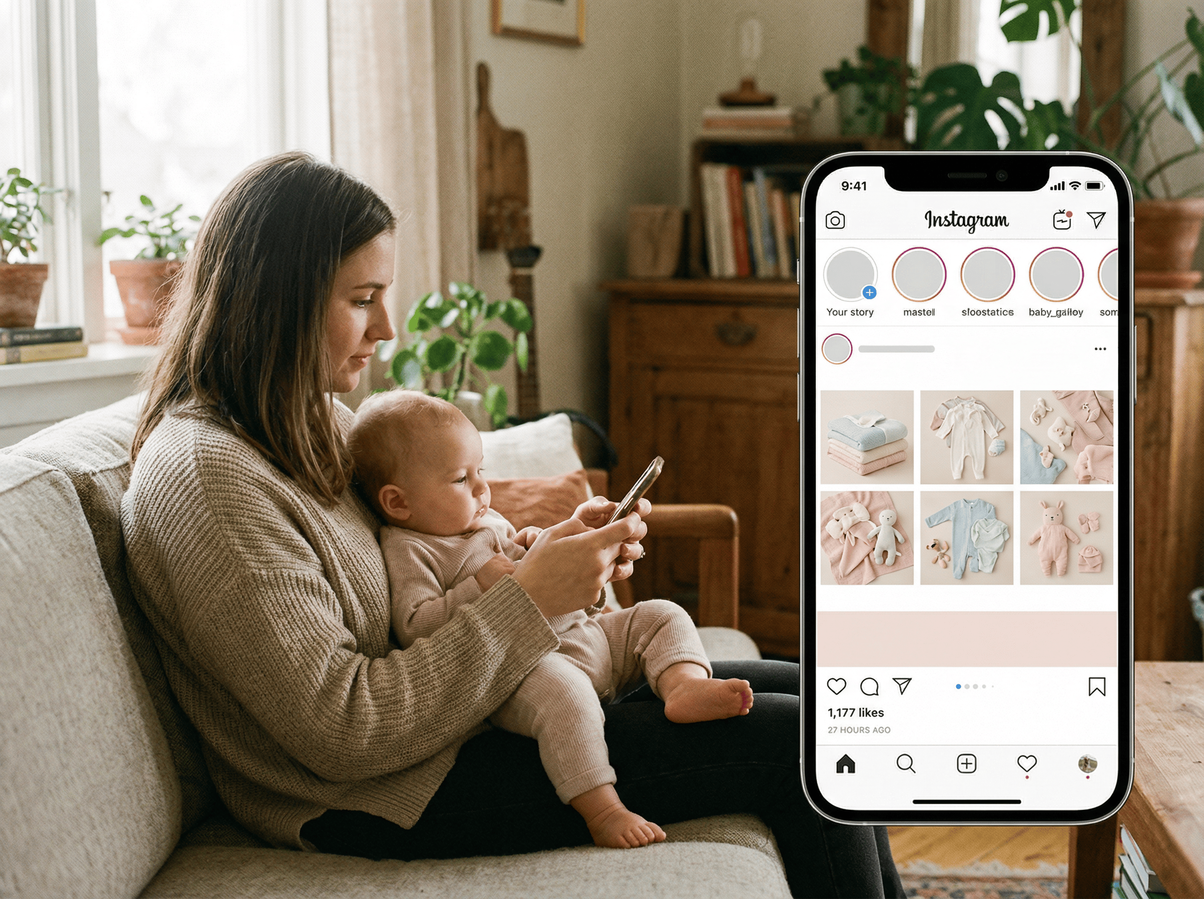 Pinterest to wyszukiwarka wizualna, w której przyszłe mamy planują wyprawkę na tygodnie przed zakupem. TikTok to platforma, gdzie społeczność „mom tok” aktywnie dzieli się rekomendacjami. Oba kanały łączy jedno: decyzje zakupowe kształtują się tu organicznie, zanim użytkownik trafi do Google.