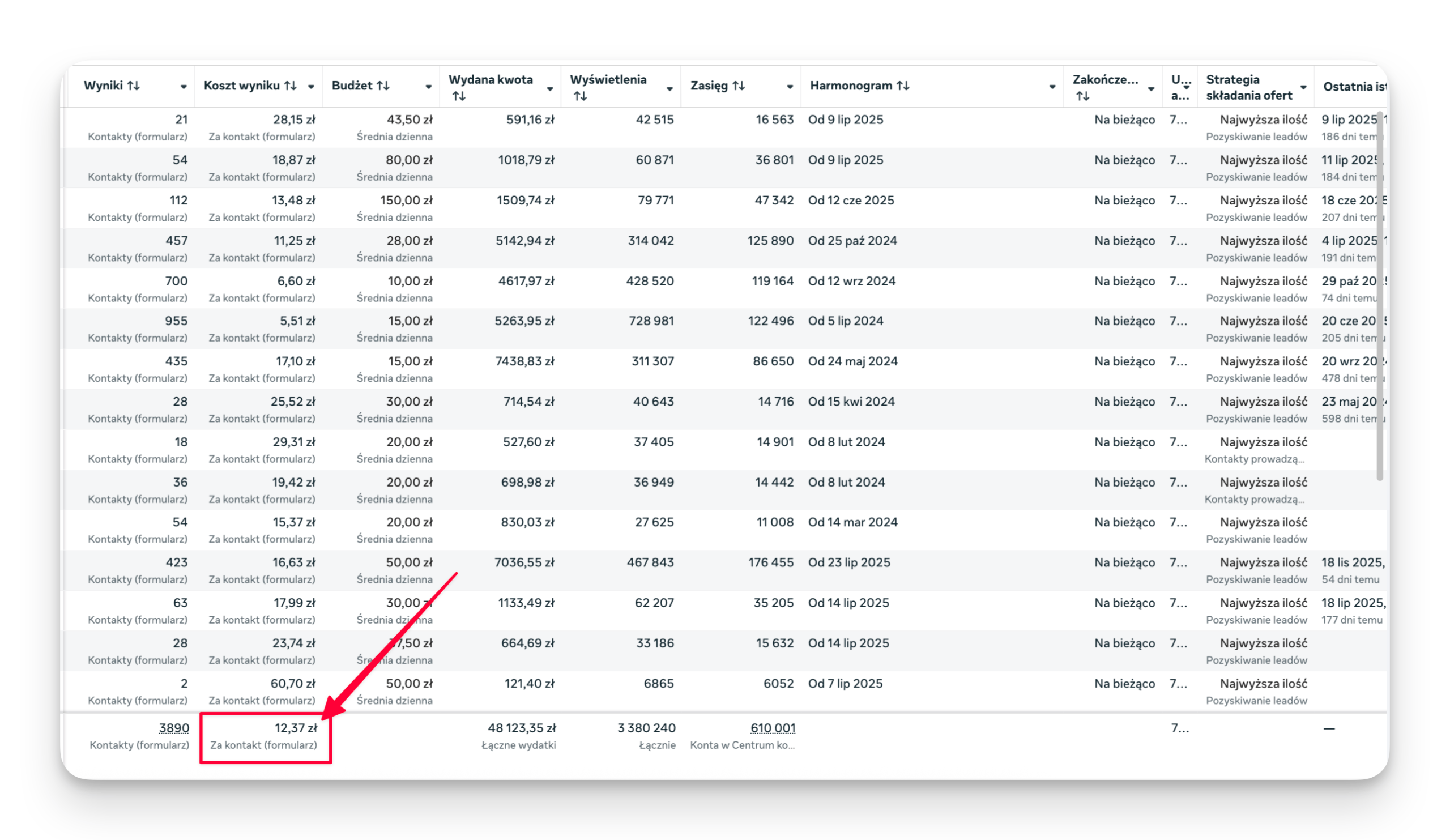 Średni koszt pozyskania kontaktu